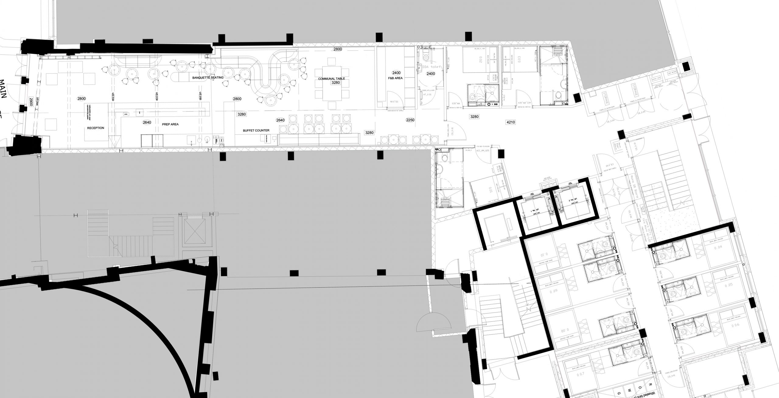 The hotel consists of 150 bedrooms with a lobby and the Café area. The property is accessed from the old theatre’s Grade II-listed frontage. The Café and the reception area occupy part of the ground floor level belonging to the former theatre and the bedrooms are placed within a new building and spread across four levels, including the ground floor.