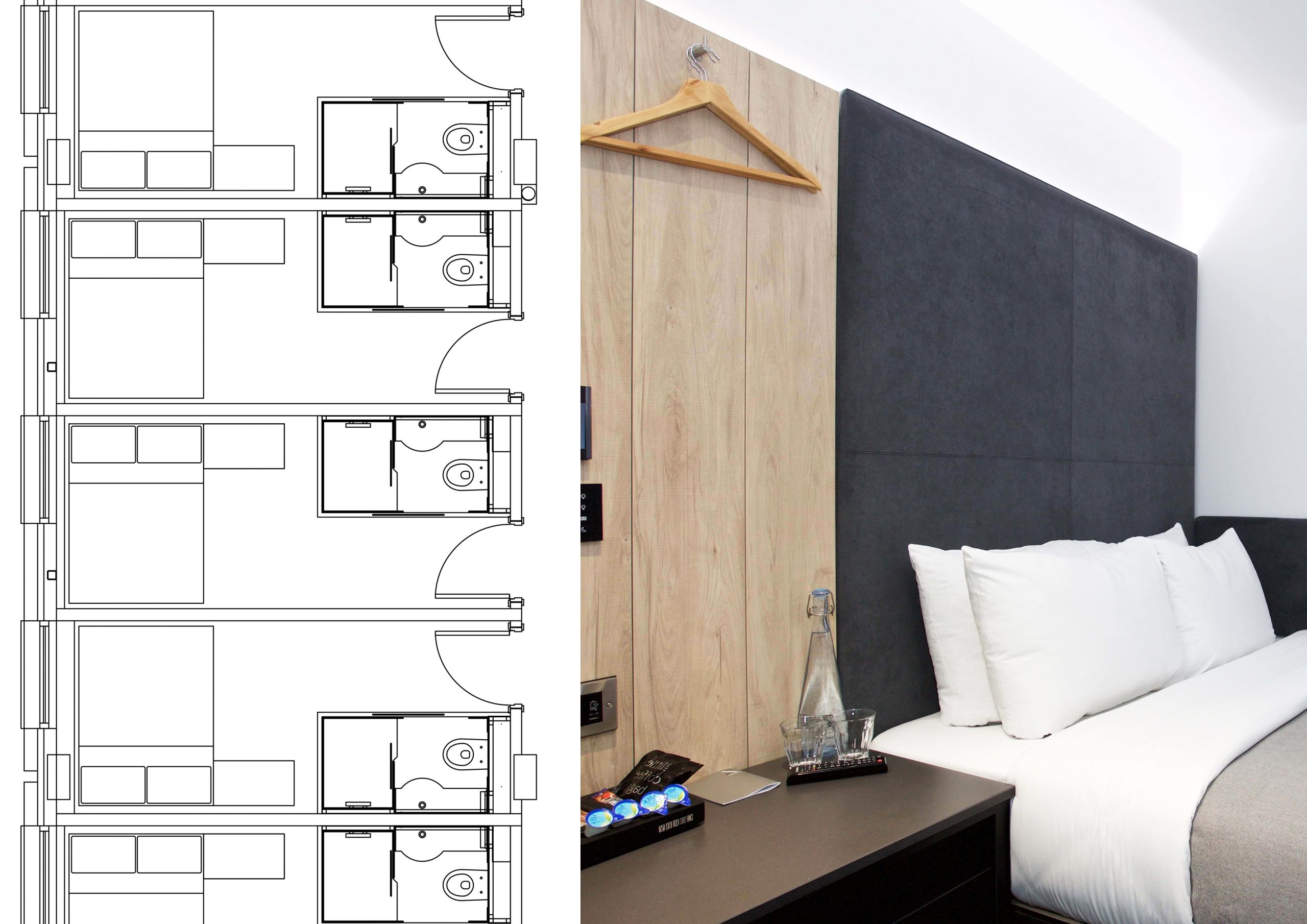 El esquema de diseño se basa en el nuevo concepto de hotel de Z Hotels centrado en ofrecer un producto de alta calidad, accesible para todos, mediante el uso eficiente del espacio. Las habitaciones están diseñadas con un área de aprox. 10 metros cuadrados con baño, para huéspedes que realizan estancias frecuentes pero más cortas.